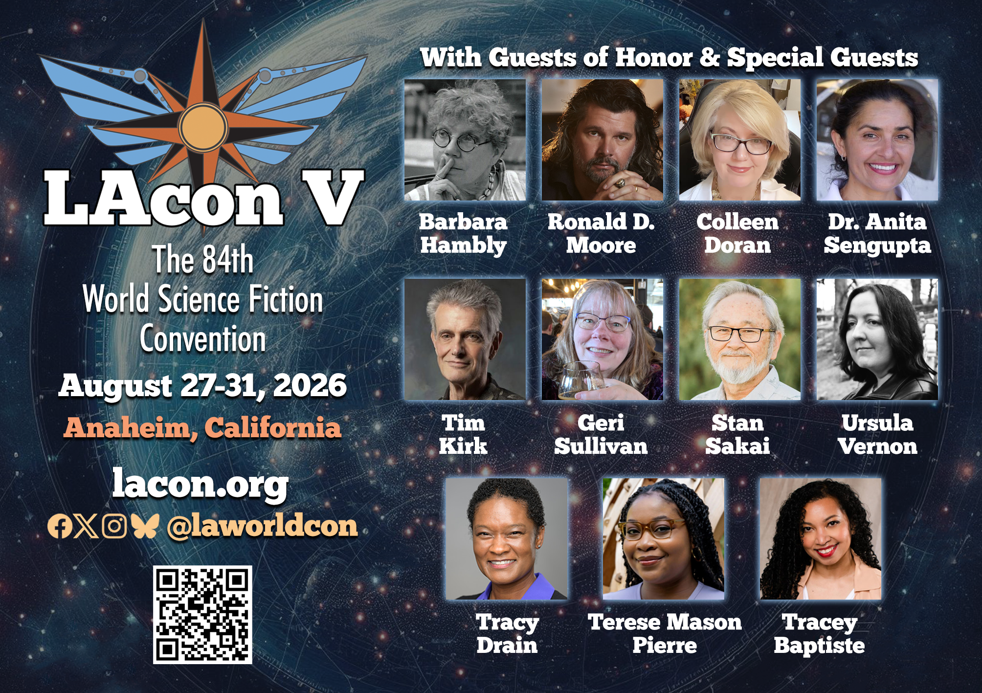 The Southern California Institute for Fan Interests (SCIFI) Inc. is the proud sponsor of the 84th World Science Fiction Convention. We invite you to join us at LAcon V, August 27-31, 2026 in Anaheim, California. Full details at lacon.org.